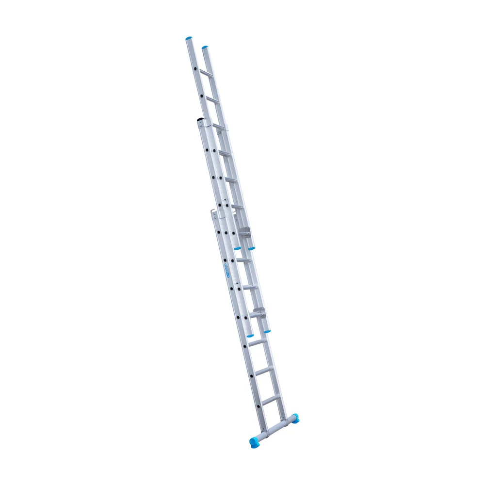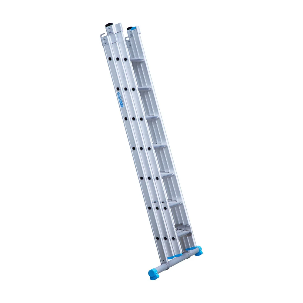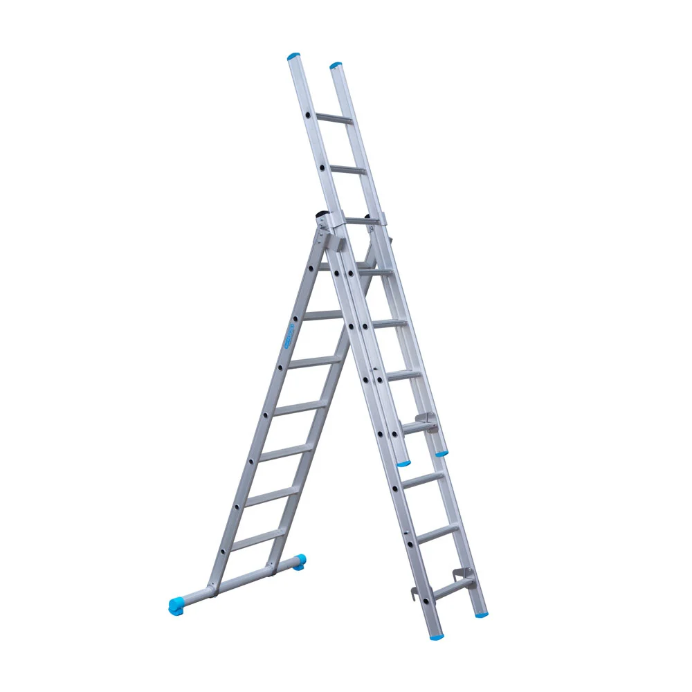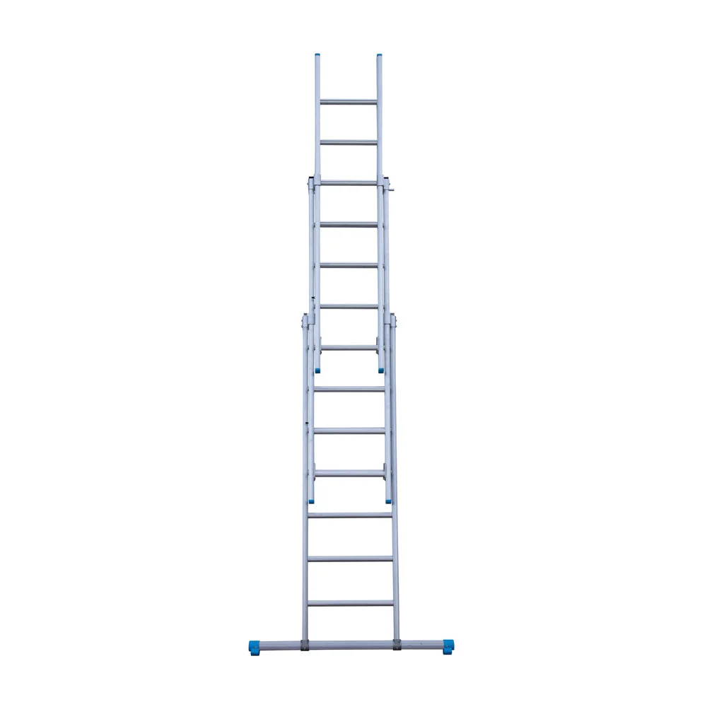 Die Eurostairs Maxall Kombi Sprossenleiter mit Traverse 3x7 Sprossen erfüllt die strengsten Zulassungen für den professionellen Einsatz. Diese 3-teilige Kombi Alu-leiter kann als Standleiter und als Anlegeleiter verwendet werden.