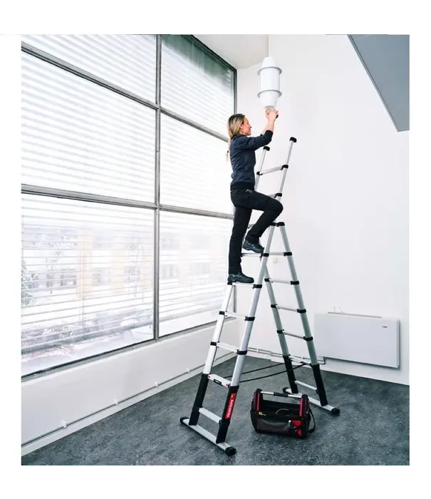 Die Telesteps Combi Line Kombileiter 7+2 Stufen ist Anlegeleiter, Stehleiter und Stufenstehleiter in einem. Wenn Sie längere Zeit auf der Leiter stehen müssen und Ergonomie für maximalen Komfort und Sicherheit wichtig ist, ist die Telesteps Combi Line der richtige Partner für diese Aufgabe!
