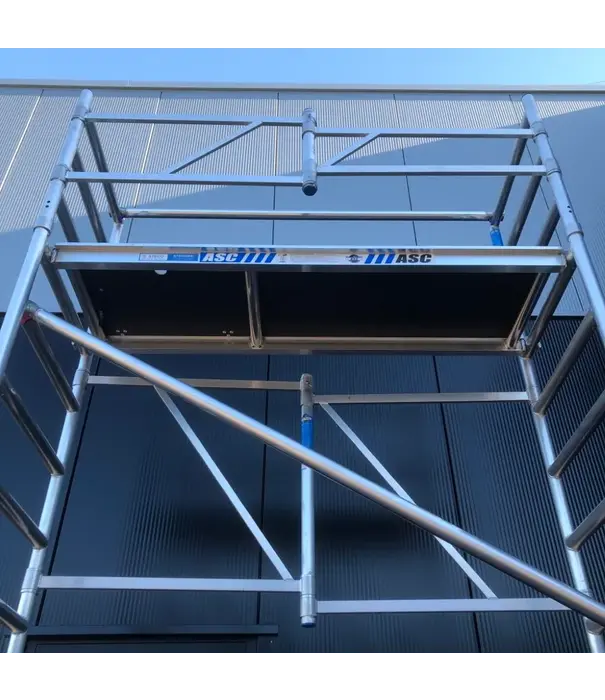 De ASC A-Line vouwsteiger 75x190 is standaard voorzien van geribbelde kraagbuizen voor uitbreiding in de hoogte. Deze kamersteiger is uitbreidbaar tot maximale werkhoogte 7,50 m. De A-Line kamersteiger kan eenvoudig verhoogd worden d.m.v. extra opbouwframes, schoren en platforms, deze zijn steeds uit voorraad leverbaar!