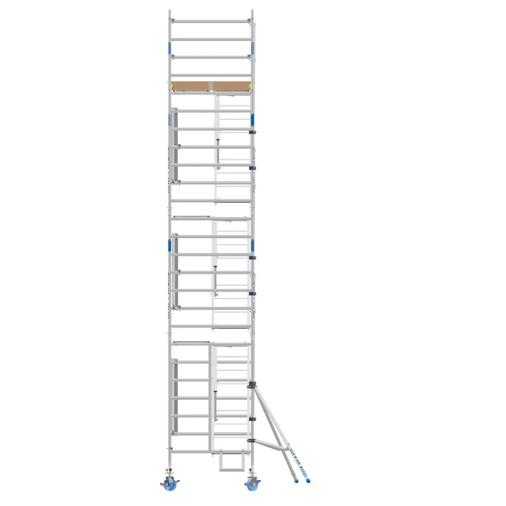 Deze ASC trappensteiger biedt maximale flexibiliteit. U heeft de keuze tussen een platform met houten deck of een carbon deck, dat tot 25% lichter is. De dubbelgeremde wielen zorgen voor extra stabiliteit en zijn tot 25 cm in hoogte verstelbaar, waardoor u ook op ongelijke ondergronden veilig kunt werken.